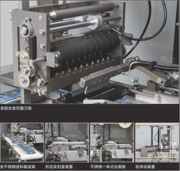 1.本機(jī)是一款全自動(dòng)高速透明膜包裝設(shè)備,采用平推式包裝方式,所有裹包及熱封動(dòng)作均凸輪傳動(dòng)完成,具有速度快、運(yùn)行穩(wěn)定等特點(diǎn)。